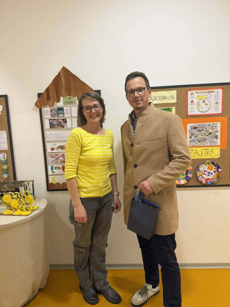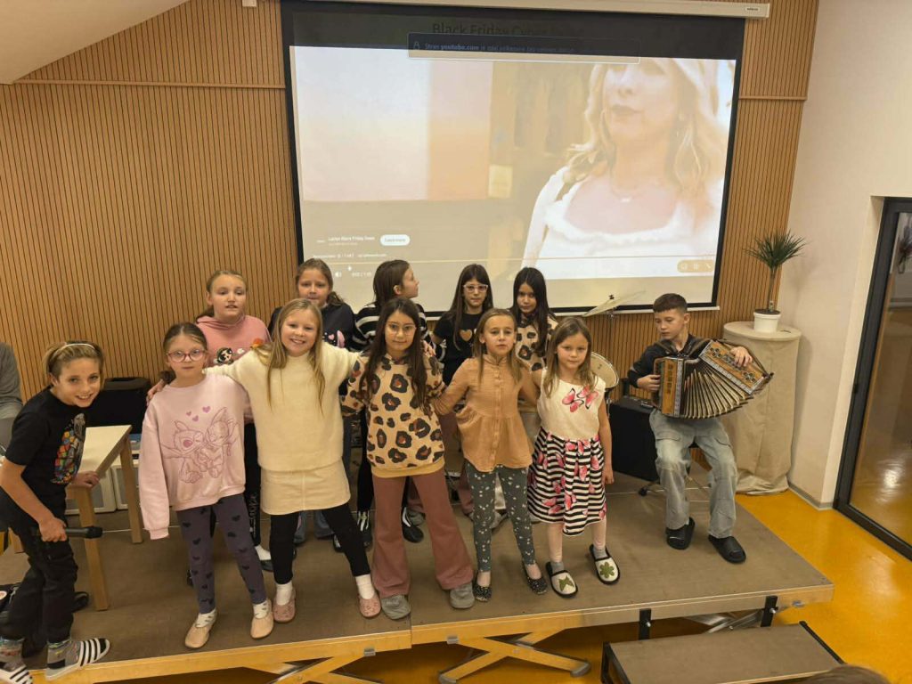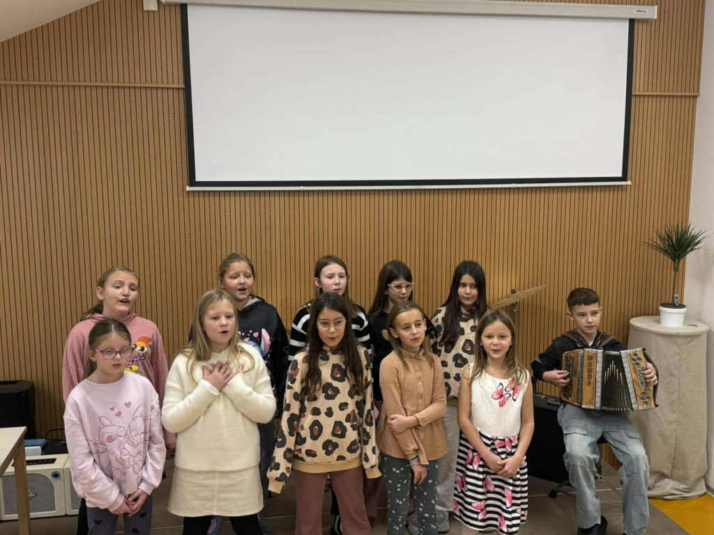 Naši učenci so petkov dan (21. 11.) pričeli z značilnim zajtrkom: kruh, maslo, med, mleko in jabolko. Vse sestavine so bile lokalnega izvora, kar dodatno poudarja pomen podpore okoliškim kmetom in čebelarjem. Po koncu pouka smo učiteljice RaP-a v jedilnici šole organizirale program za učence razredne stopnje. Ob zvokih harmonike šestošolca Tila Kuzmana je skupina učenk zapela Slakovega Čebelarja. Nato je vse prisotne v jedilnici nagovoril naš izbrani gost. Gostili smo domačina, nekdanjega zelo uspešnega učenca naše šole, danes doktorja znanosti in kmetovalca, gospoda Simona Klančnika. Z zanimivim in nazornim predavanjem je v pogovoru z učenci predstavil domače kmetijske dejavnosti in vseskozi opozarjal na pomen lokalno pridelane hrane. Sledile so različne dejavnosti po razredih. Izbrana skupina učenk 3. in 4. razreda je skupaj s harmonikarjem Tilom izvajala Slakovo pesem še v razredih predmetne stopnje. Odšli so tudi na obisk v sosednji vrtec, kjer so se jih zelo razveselili in bili nad izvedeno pevsko točko zelo navdušeni. Aktivnosti, vezane na TSZ pa smo zaključili s pokušino domačih medenjakov.