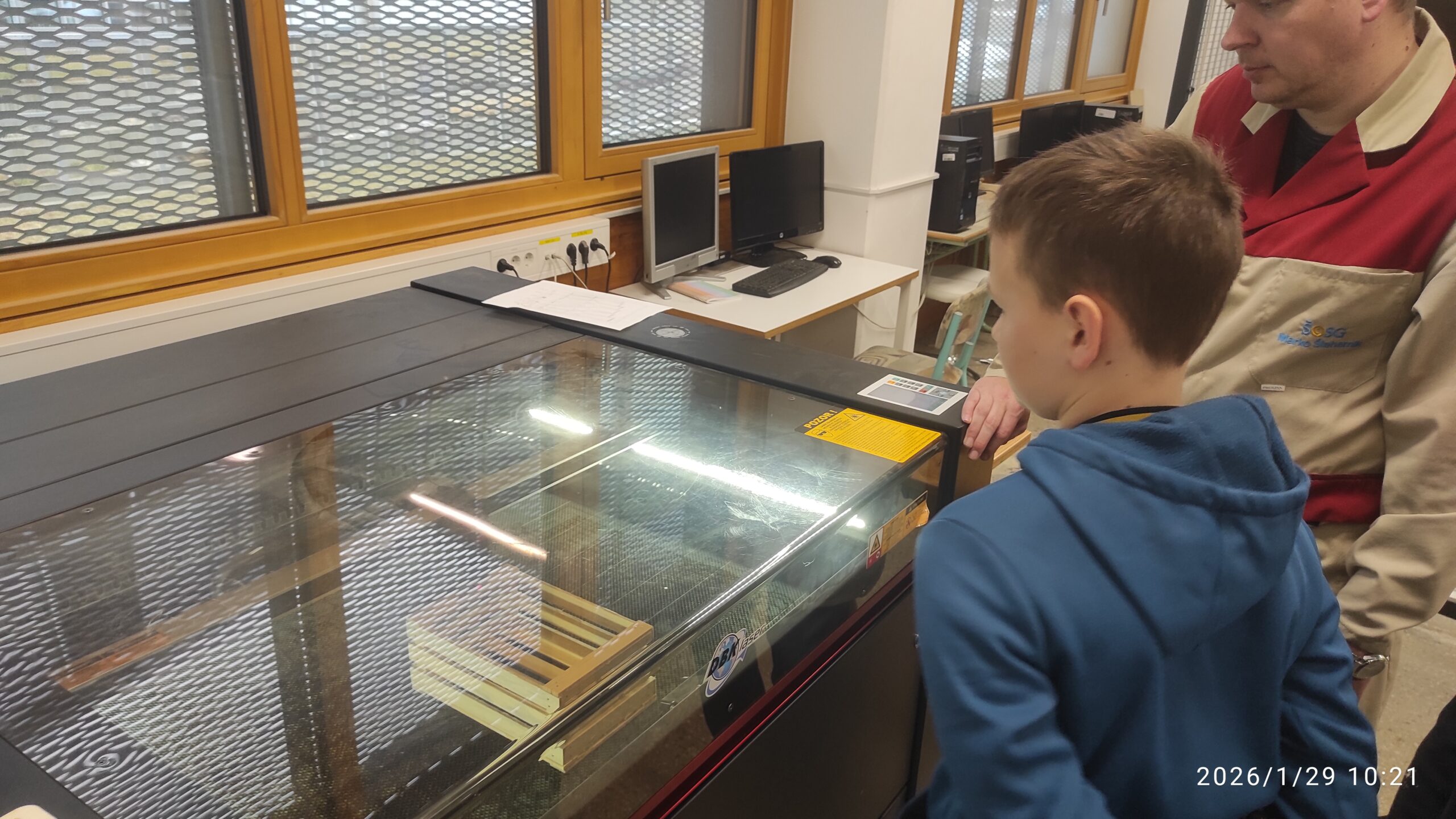 gravirnim strojem, so vgravirali na lesene zaboje svoja imena in si ogledali, kako poteka laserski razrez lesa. Učitelji in učenci so bili z obiskom zelo zadovoljni. Zahvaljujemo se Srednji lesarski šoli Slovenj Gradec za strokovno vodenje, topel sprejem in nepozabno izkušnjo.