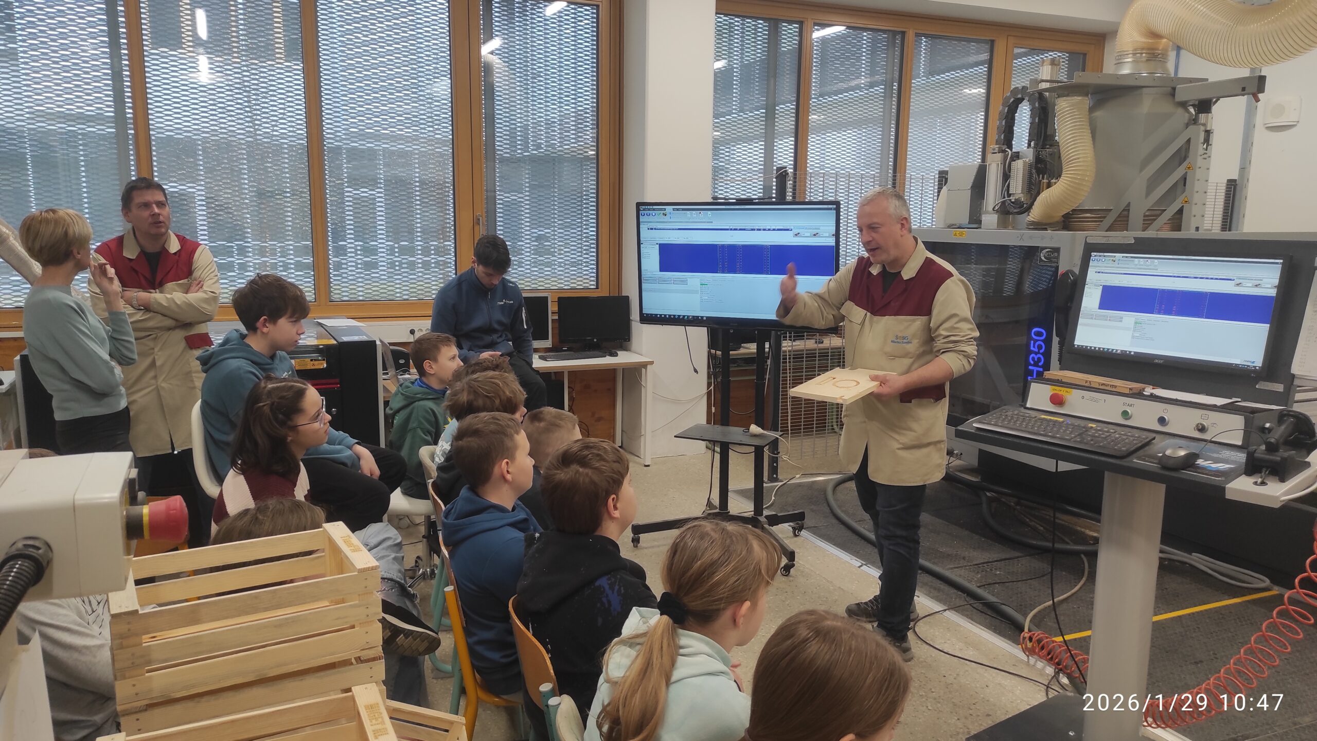 V četrtek, 29. januarja, so učenci 6.a razreda obiskali Srednjo lesarsko šolo Slovenj Gradec. V sklopu tehniškega dne, so spoznali prostore šole, programe šolanja in možnosti nadaljnjega izobraževanja. Po uvodni predstavitvi, so učenci sodelovali v praktični delavnici, kjer so pod strokovnim vodstvom izdelali lesene zaboje, ki so jih lahko odnesli domov. Pri tem so spoznali obdelovalne postopke lesa, uporabo orodij in pripomočkov ter pomen natančnosti, kakovosti izdelave in medsebojnega sodelovanja. Učenci so si v delavnici ogledali stroje in različne vrste lesnih gradiv. Z laserskim