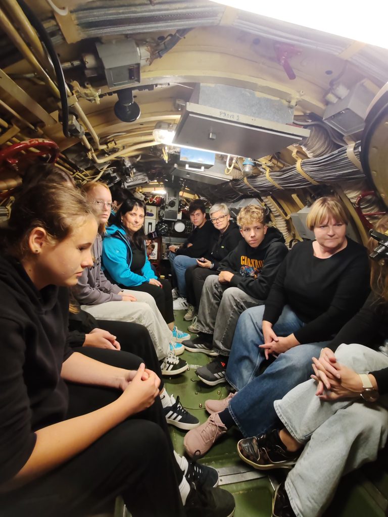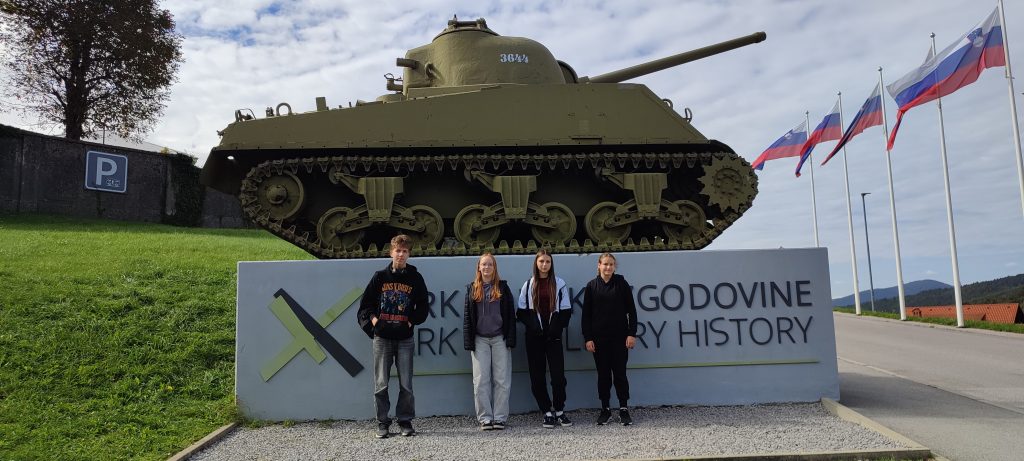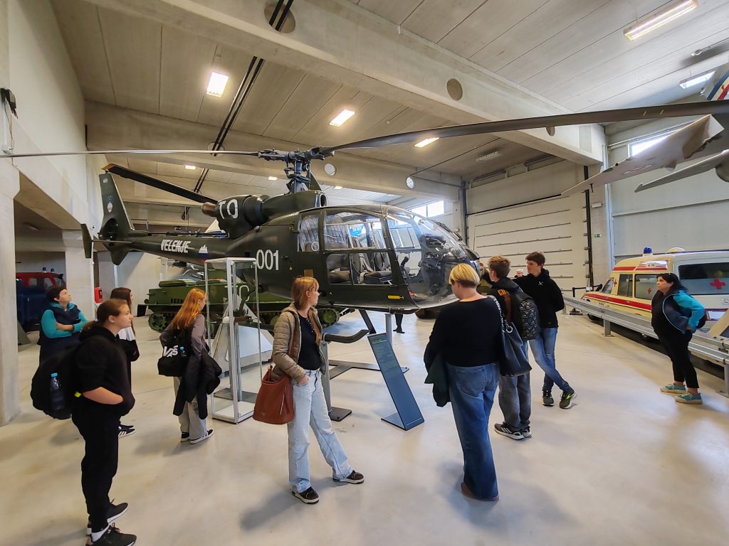 Najprej smo obiskali Park vojaške zgodovine v Pivki, kjer smo si ogledali bogato zbirko vojaških vozil, letal, podmornico in zanimive razstave o zgodovini slovenskega prostora v 20. stoletju. Učenci so z zanimanjem prisluhnili vodniku, ki je predstavil številne zanimivosti in zgodbe, povezane z razstavljenimi eksponati.