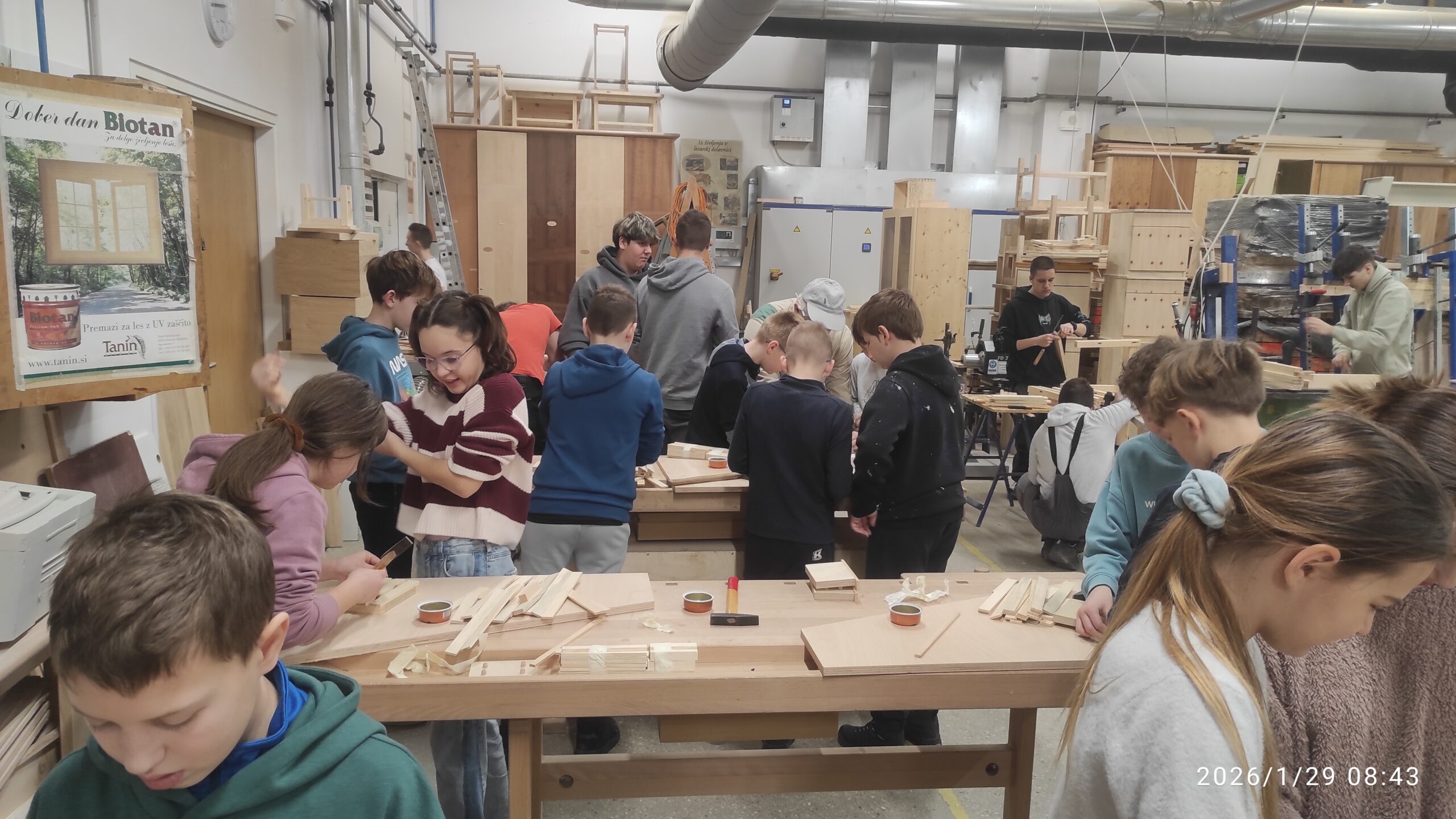 V četrtek, 29. januarja, so učenci 6.a razreda obiskali Srednjo lesarsko šolo Slovenj Gradec. V sklopu tehniškega dne, so spoznali prostore šole, programe šolanja in možnosti nadaljnjega izobraževanja. Po uvodni predstavitvi, so učenci sodelovali v praktični delavnici, kjer so pod strokovnim vodstvom izdelali lesene zaboje, ki so jih lahko odnesli domov. Pri tem so spoznali obdelovalne postopke lesa, uporabo orodij in pripomočkov ter pomen natančnosti, kakovosti izdelave in medsebojnega sodelovanja. Učenci so si v delavnici ogledali stroje in različne vrste lesnih gradiv. Z laserskim
