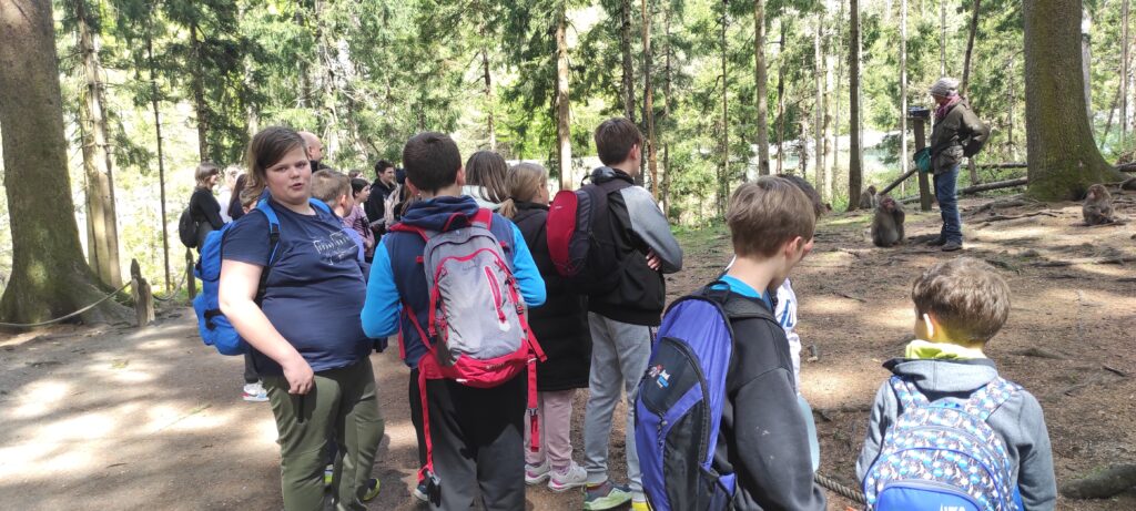 Sledil je obisk Opičje gore (nemško Affenberg), kjer smo si ogledali prostoživeče japonske makake. Sprehod med opicami je bil posebno doživetje, saj so se živali gibale povsem svobodno. Učenci so izvedeli veliko novega o njihovem načinu življenja, vedenju in prehrani.