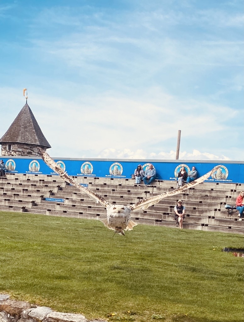 Najprej smo se odpravili do gradu Vajškra (nemško Landskron), ki ponuja čudovit razgled na mesto Beljak in izjemno predstavo ptic ujed. Učenci so z navdušenjem opazovali orle, sokole in druge ptice, ki so prikazale svoje sposobnosti letenja in lova. Vodnik nam je v nemščini predstavil zanimivosti o pticah, kar je bila odlična priložnost za poslušanje tujega jezika.