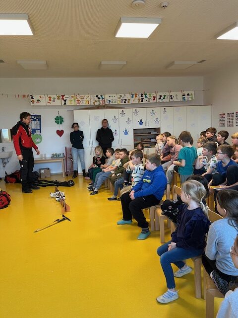 Primož Areh se je velikodušno odzval povabilu mentoric pohodniške dejavnosti, Nine-Valerije Krištofelc in mag. Majde Tamše Horvat, in s svojim pristopom odlično predstavil delovanje GRS ter njihovo poslanstvo. Učence je konkretna in nazorna predstavitev pritegnila in celo tako navdušila, da se je kar nekaj mladih oglasilo, da bi bili, ko odrastejo tudi sami gorski reševalci in bi z veseljem opravljali tako plemenito in pomembno delo za našo družbo.
